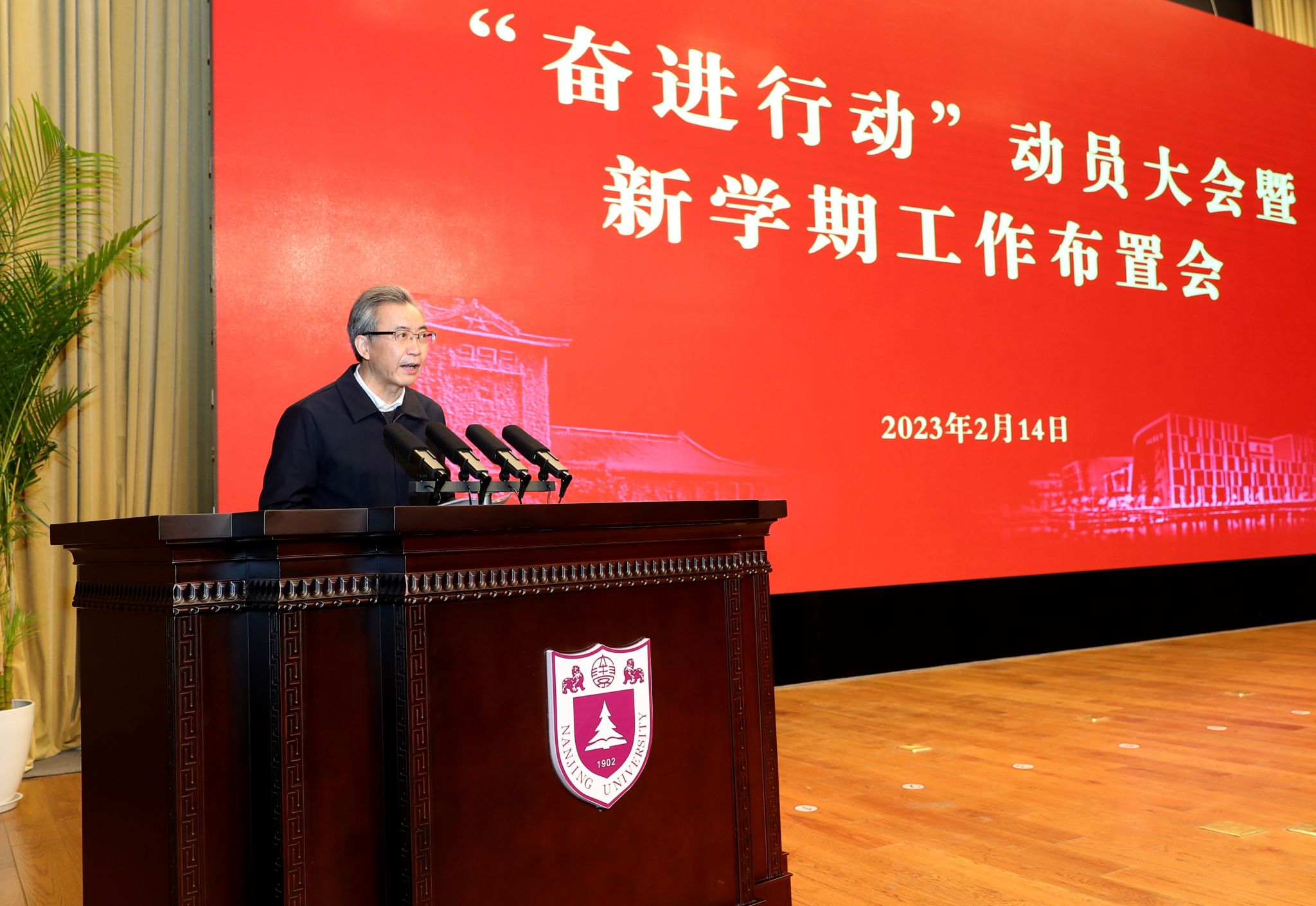 Lyu Jian delivered a speech and made arrangements for administration work this term. He pointed out that the history of Nanjing University epitomizes the development of higher education in modern China, and the University always puts focus on the combination of student cultivation, university education and the era. NJU never forgets its original aspiration as a university, and always follows the trend of the changing times. In order to find the right course of development with the characteristics of NJU, it is imperative to uphold fundamental principles and break new ground, to take steady steps, and to plan things as a whole.